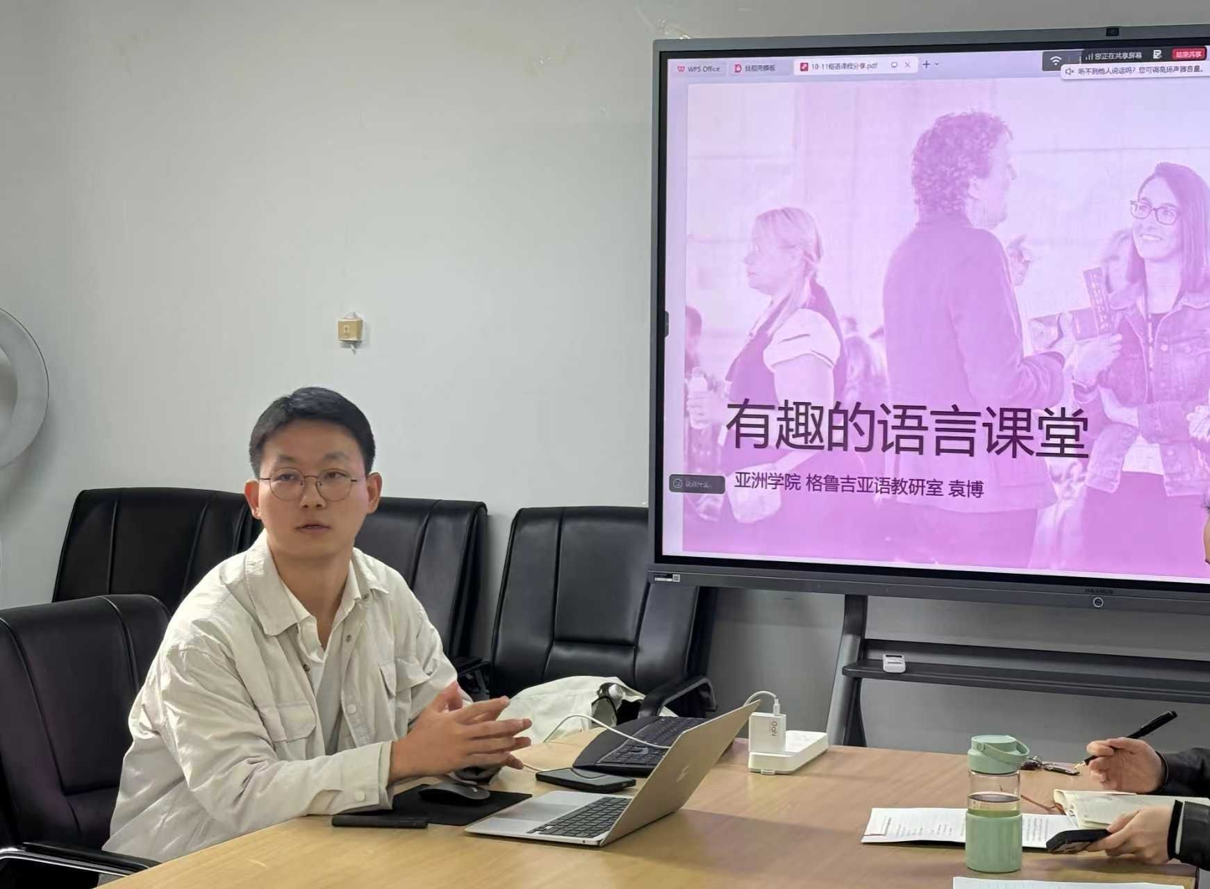 10月11日下午,非洲学院教工支部特邀格鲁吉亚语教师袁博就三外课程教学设计经验进行分享,搜同视频